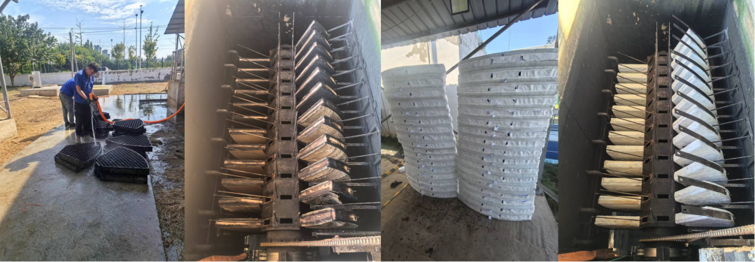 纖維轉(zhuǎn)盤(pán)濾池的狀態(tài): 過(guò)濾、反沖洗和排出...