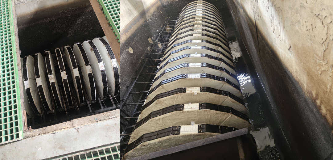 經(jīng)過(guò)多年連續(xù)運(yùn)行,濾池逐漸顯現(xiàn)一系列影響效能的問(wèn)題,濾布老化破損導(dǎo)致過(guò)濾精度下降,部分出水 SS 值波動(dòng)超標(biāo);吸口堵塞、吸盤臂磨損影響反洗效率,加劇濾布堵塞頻率;1-3 號(hào)池水泵先后損壞,直接導(dǎo)致反洗動(dòng)力中斷,不僅增加人工運(yùn)維成本,整個(gè)項(xiàng)目的運(yùn)行成本也將大大上升。